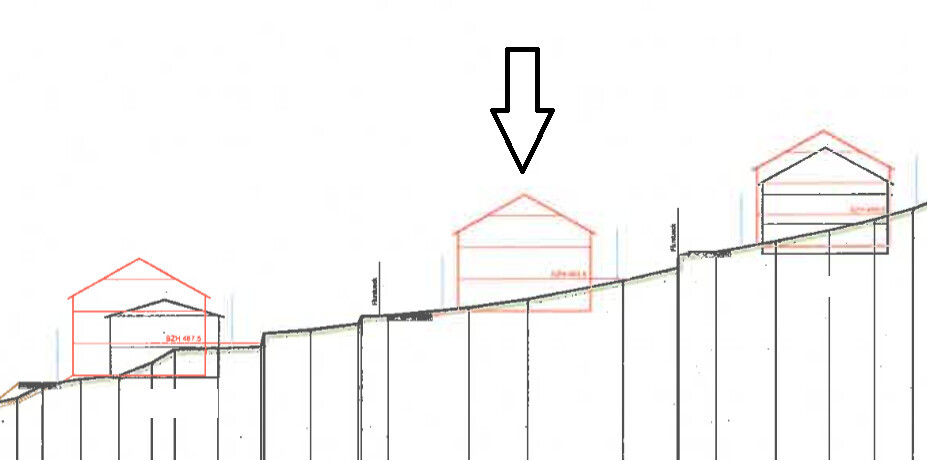 - Das Plangebiet fällt von Süden nach Norden um ca. 20 Höhenmeter ab (Die Neigung ist auf Grundstück 3 wesentlich höher wie auf Grundstück 1 und höher wie auf 2) - siehe Bild Geländeschnitt