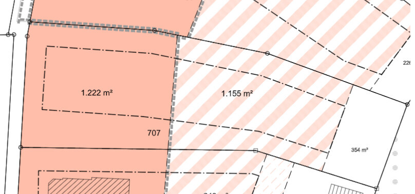 - Grundstück 1 ist bereits erschlossen, Grundstück 2 und 3 nicht.