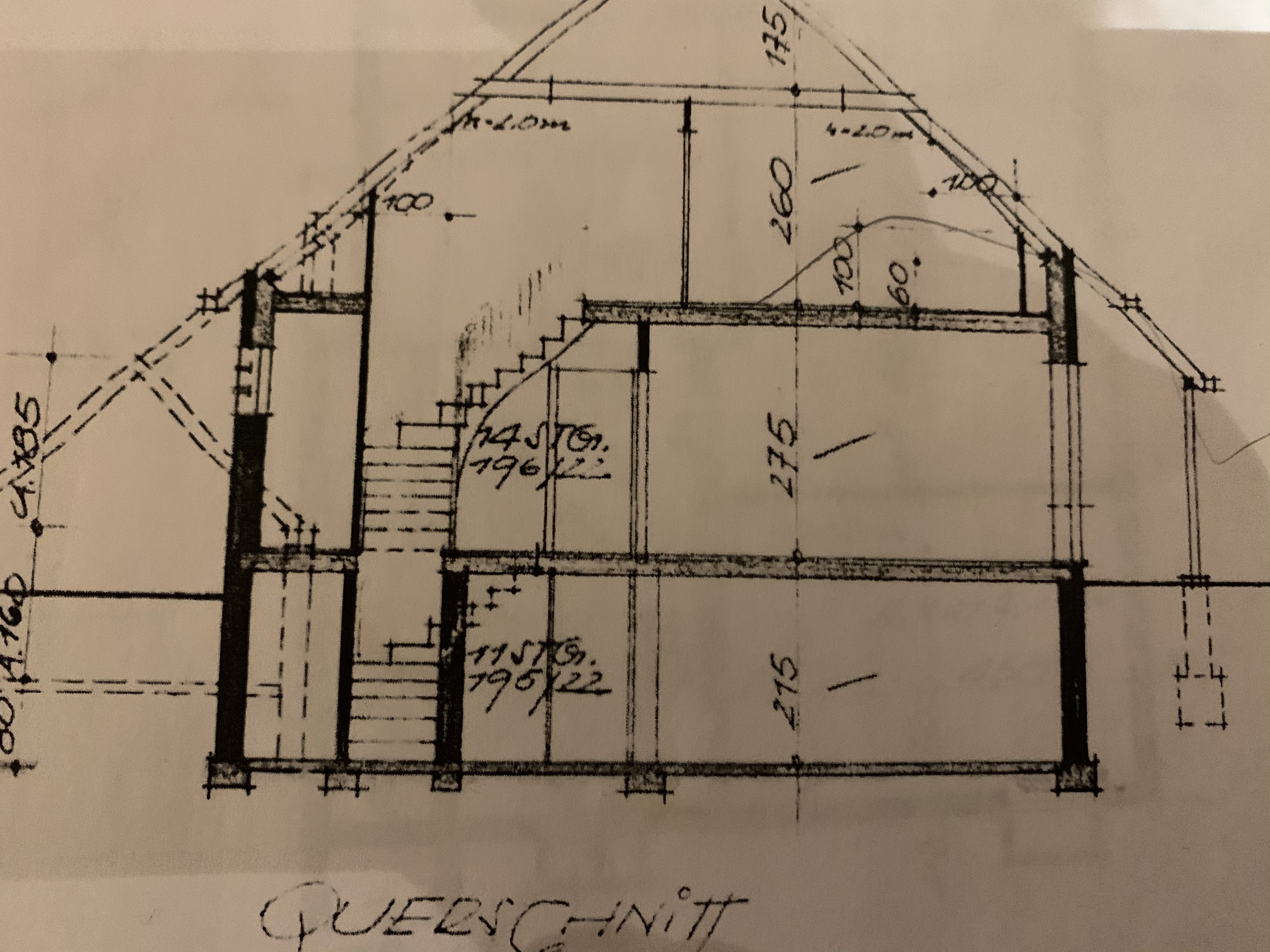 Bezüglich Holzdecke: Gibts da typische dicken nach denen ich im Querschnitt des Hauses suchen kann, die sich von Betondecken (wurde das 1960 schon regelmäßig in Einfamilienhäusern verwendet) unterscheiden?Wenn Du mehr Zeichnungen hast, dann her damit. Die Wandstärken sind hier ein eindeutiges Kontraindiz gegen eine Beton- oder sonstige schwere Decke, und 1960 ist für so ein kleines Siedlungshäuschen auch noch der Nachkriegszeit zuzurechnen. Mir gefallen übrigens auch die vielen Kaminzüge nicht, was ist denn da für eine Heizung drin ? Juniper 03.01.2021 21:13