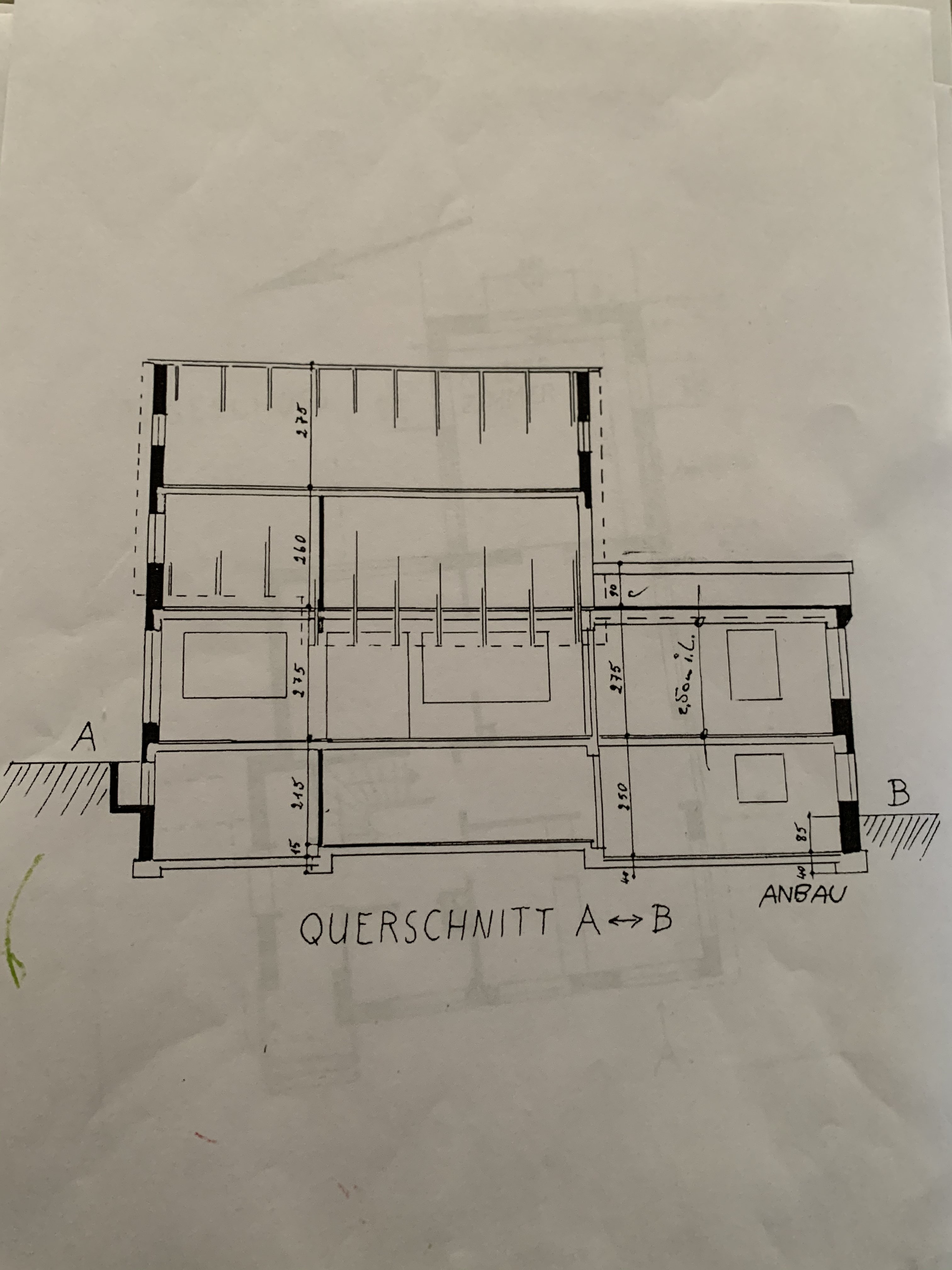 Die beiden mir vorliegenden Querschnitte. Einer von 1959/1960 und der andere wurde in den 70ern im Zuge des Anbaus erstellt.