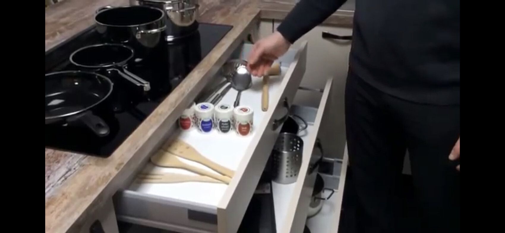 Bei uns ist auch direkt das Besteck drunter. Aber mit induktionskochfeld vielleicht Bau das nicht so tief?