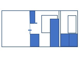 Aber selbst wenn die Küche unbedingt abgetrennt werden soll, würde ich die mit Schlafen tauschen. Weil Schlafen in der Regel weniger Licht braucht und die Küche dort, wo sie jetzt ist ein dunkles Loch ist.