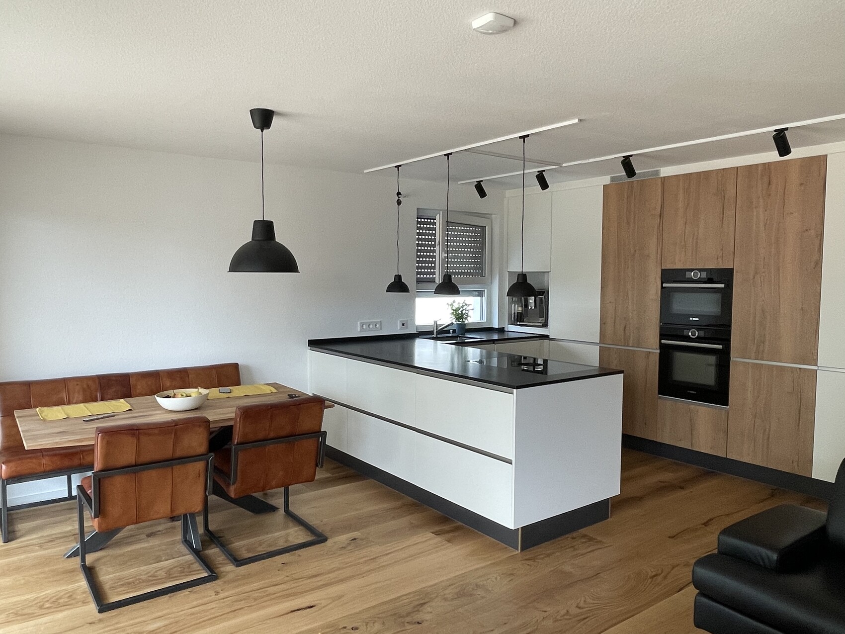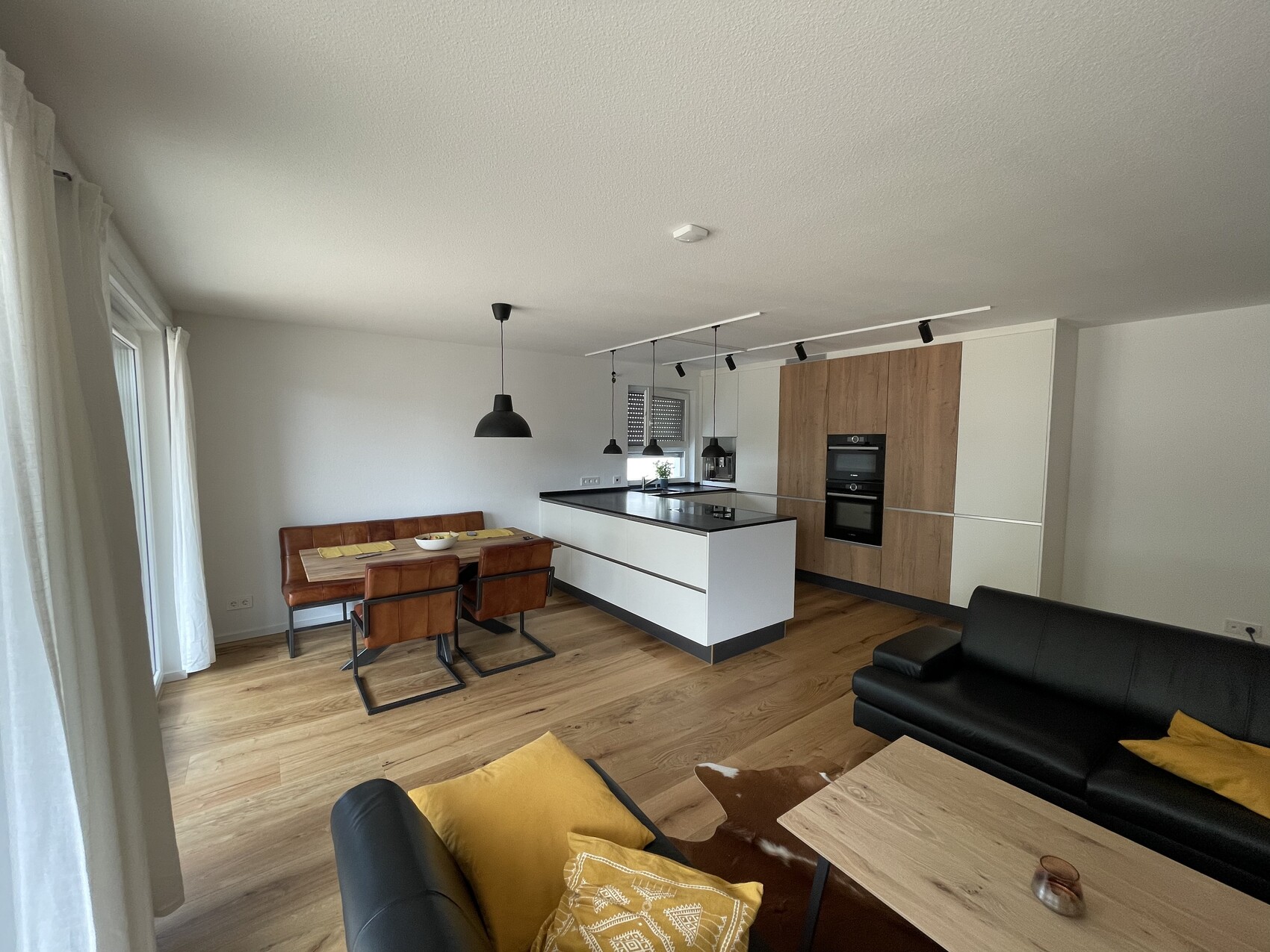 Jetzt ist unsere Küche in der ETW auch mal Fertig und die Sitzgruppe kam auch, da wollte ich mal hier paar Bilder zeigen. Haben echt lange nach einer Sitzgruppe gesucht die nicht überteuert ist. ach ja die Esstischlampe hängt noch falsch