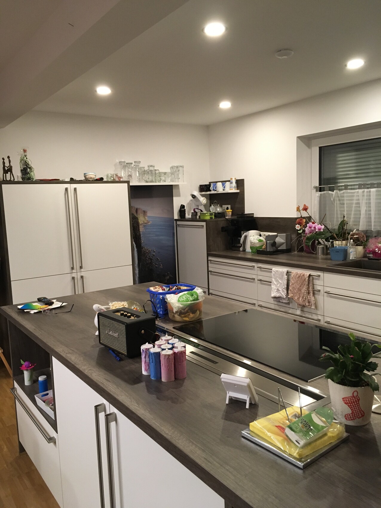 hinten bei dem Geschirrspüler steht natürlich recht viel aber da unsere Katzen selbst gemachtest futter bekommen müssen wir die Dosen per Hand abwaschen (die sind zu leicht für den Geschirrspüler und drehen sich um), die küchenmaschine nutzen wir auch fast täglich weshalb wegräumen unsinnig wäre