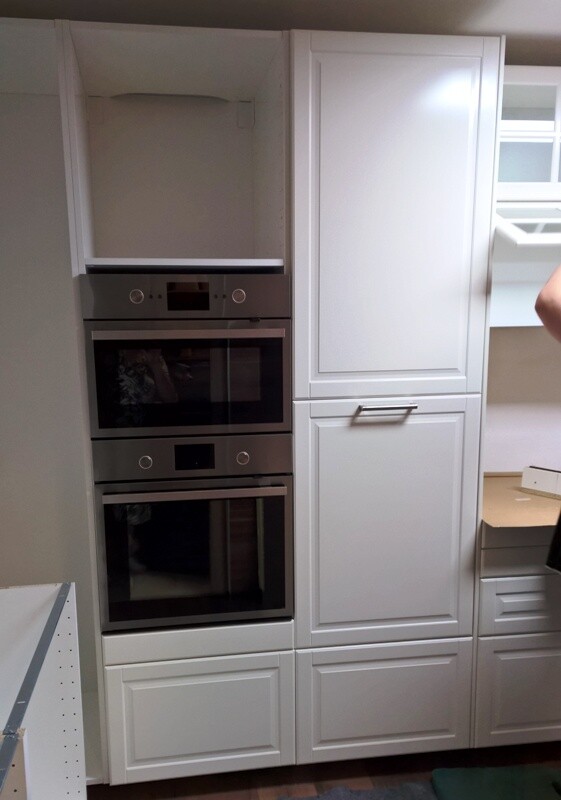 Also doch so einige Spezialumbauten die natürlich auch etwas Planungs und Umsetzungszeit gekostet haben.Da würden mich die Details sehr interessieren. Habe selber einen 103 cm hohen Kühlschrank, für den ich sehr gerne eine 100er Tür verwenden würde, statt einer 120er. Wie habt ihr das gemach? Wie hoch ist euer Kühlschrank? Könntest du ein Foto bei geöffneter Kühlschranktür posten?