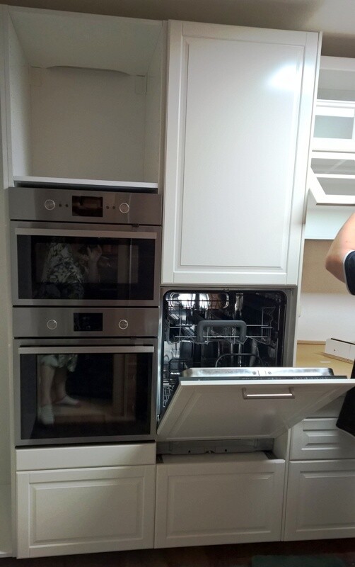 Das ging viel leichter wie erwartet. 100cm Tür oben, 80cm Geschirrspüler Skinhade mit Gleitscharnier