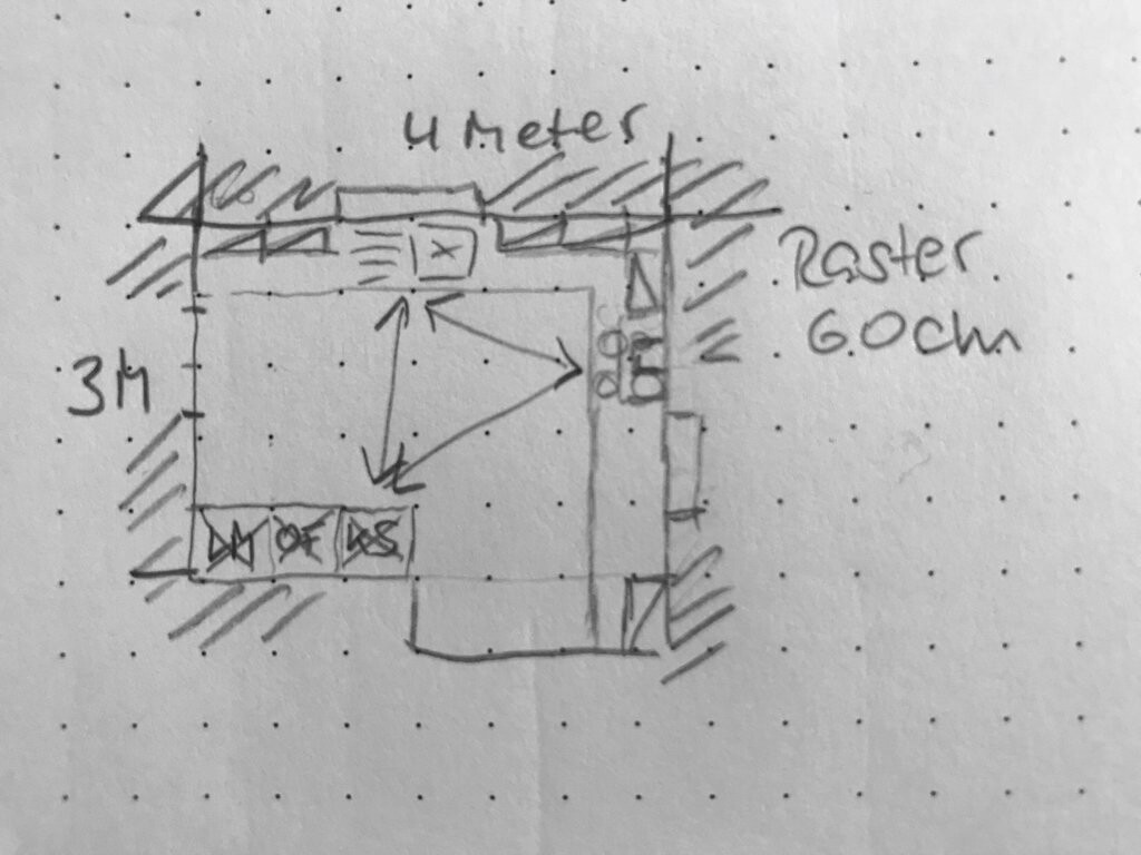 Auch sollte der Raum genug Platz hergeben, auf teure und altbackene Eckschränke zu verzichten. Ich zeichne mal etwas, wenn Du magst