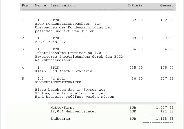 Leider benötigt meine Elco Wärmepumpe dann noch einen Kondensationswächter und ein 24V Trafo. Das ganze würde mich 1200€ kosten!