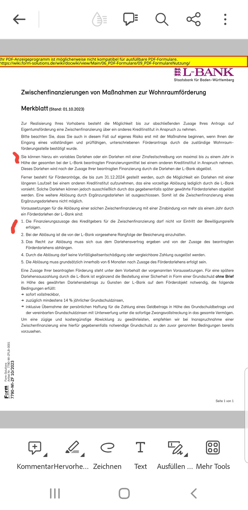 Wenn ich es richtig verstanden habe, darf aber sowohl die Zwischenfinanzierung erst bei Bewilligungsreife abgeschlossen werden und auch erst dann begonnen werden? So steht es im Merkblatt...Im Merkblatt steht doch, dass auf eigenes Risiko auch schon nach vorabprüfung des LRA eine Zwischenfinanzierung gemacht werden darf. sonst müsste man ja Erst einmal die 6-7 Monate Bearbeitungszeit abwarten....Noah123416.02.24 14:33