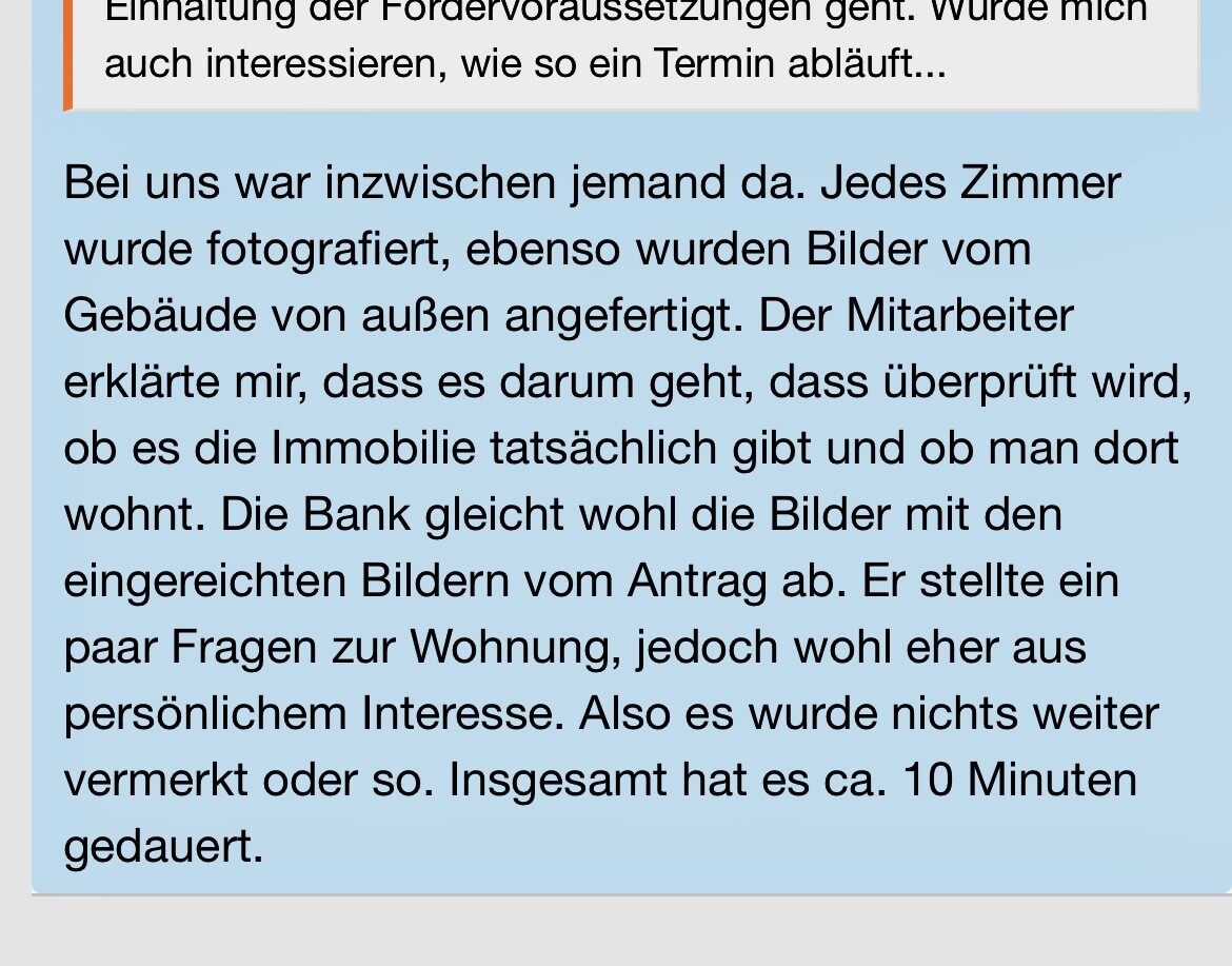 Wir hatten eine Zwischenfinanzierung, sind gerade in der Umschuldung, haben vor 2 Wochen die Verträge erhalten.