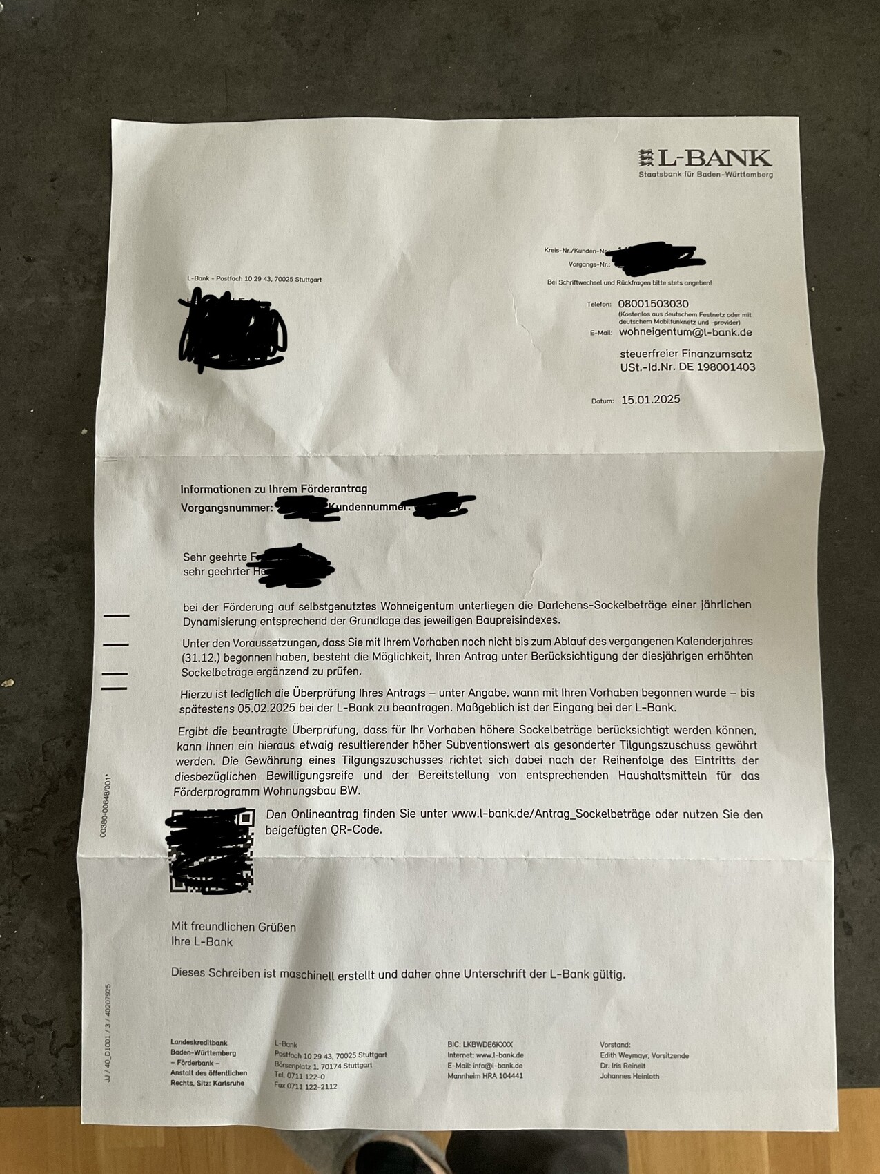 Traumvomhaus2521.01.25 20:59Bei uns war es heute auch im Briefkasten. Wir wurden Ende Oktober vorläufig bewilligt.