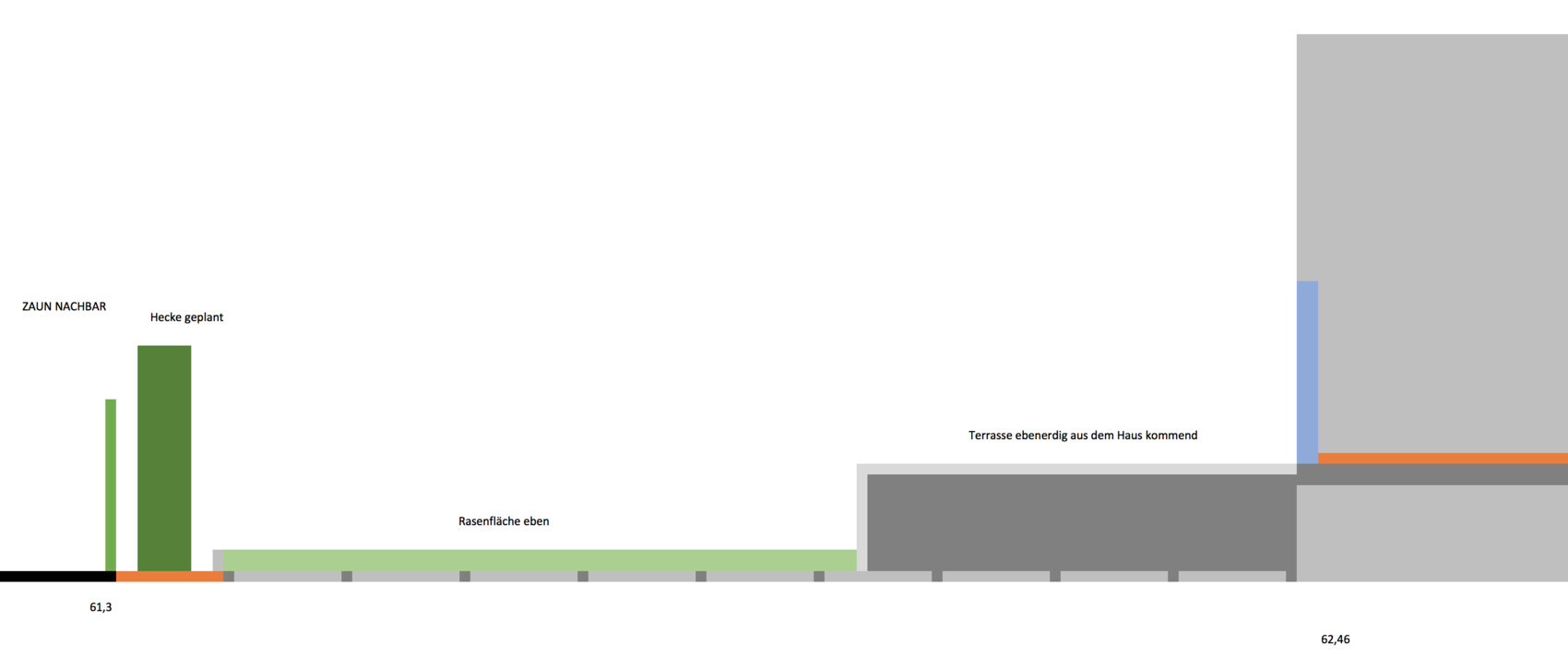 1. 80cm ca zwischen Terrasse und Rasen