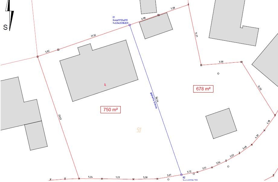 Situation: Wir (Familie mit 2 Erwachsenen und aktuell 2 Kindern) besitzen ein längliches Grundstück (750m², Breite ca 22m, Länge ca 36m) mit Hanglage (Höhenunterschied von NW nach SO 2,5 m; von NO nach SO 2m; von SW nach SO 1m) und der Straße im Süden (hier laufen immer recht viele Leute auf dem Weg zum Bahnhof vorbei). Den Lageplan habe ich beigefügt (Grundstück Nr 91). Ein Bebauungsplan liegt nicht vor. Wir wohnen aktuell noch im Altbestand, der abrissen werden soll (Übergangswohnung ist vorhanden). Unsere aktuelle Garage befindet sich nach der Teilung nun auf dem Nachbargrundstück, soll aber beim Neubau selbstverständlich in unser Grundstück integriert werden. Da wir hauptsächlich die Abendsonne genießen möchten, stellen wir uns vor, das Haus (ca. 9x13m, einfach gehalten ohne Erker/Balkon etc.) in Nord-Süd-Richtung zu drehen (Giebelseite nach Süden), möglichst nah an die Ostseite zu setzen und eine Nord-West-Terrasse zu bauen. Wir planen ein recht umfangreiches Raumprogramm (drei Kinderzimmer, Schlafen mit Ankleide und Familienbad im OG; Wohnen/Essen/Küche, Speisekammer, Arbeitszimmer und WC/Dusche im EG; Keller z. T. als Wohnkeller ausgebaut mit Gästezimmer). Laut umliegender Bebauung sind zwei Vollgeschosse erlaubt, Satteldach ist vorgeschrieben.
