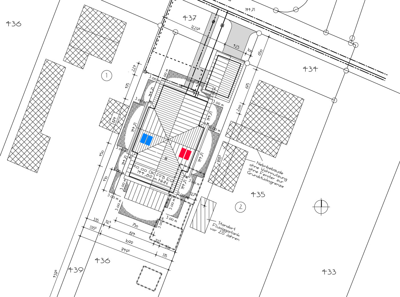 Ich merke gerade, dass ich einen Denkfehler habe... die Paneele sind ja jeweils nach Süden (mit 23 Grad Drehung Richtung West) ausgerichtet... wäre also eher die Frage, ob der Südgiebel eine längere Verschattung auf die rechte (rote) oder linke (blaue) Seite wirft (oder überhaupt)?