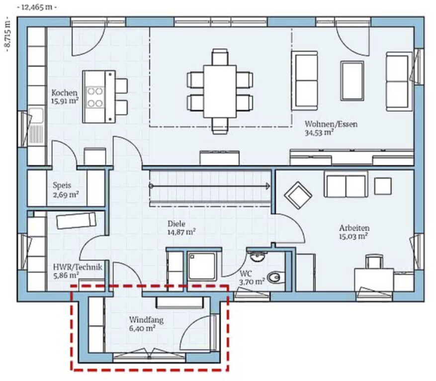 - man muss nicht durch Eingangsbereich/Schmutzbereich