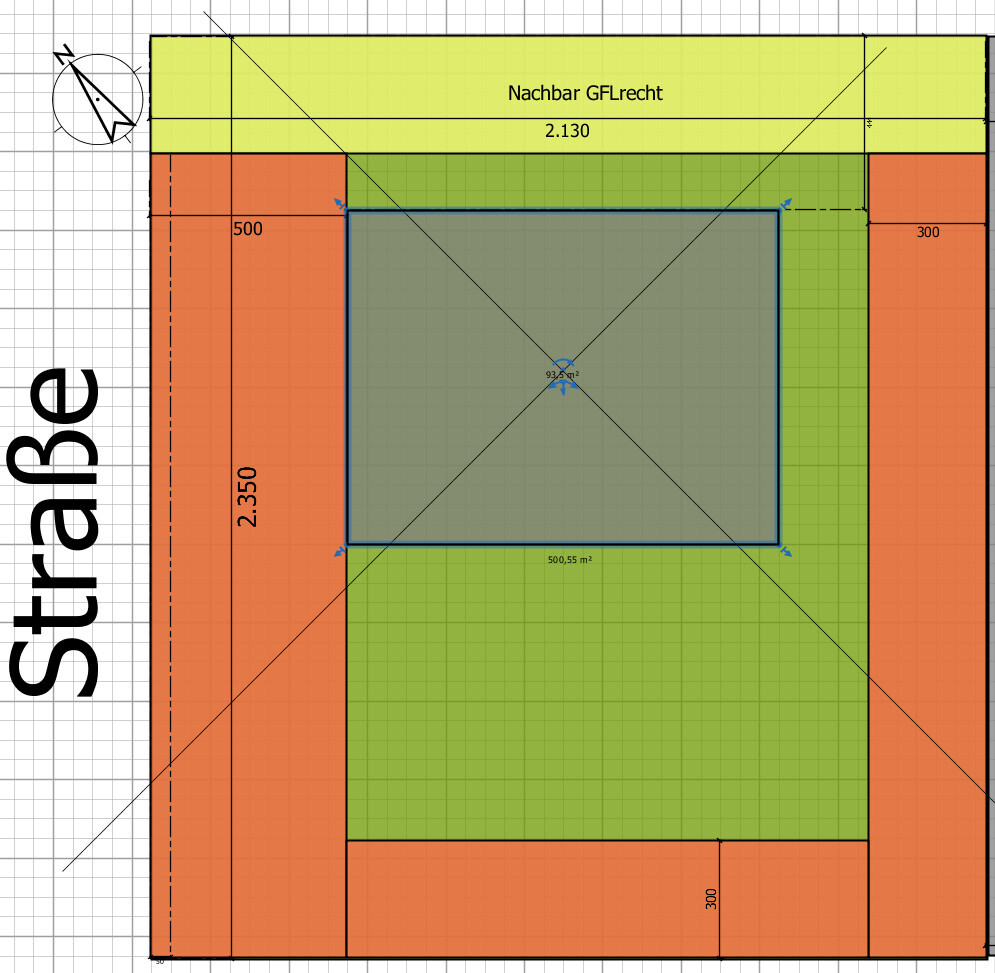 Irgendwie glaube ich, wir reden aneinander vorbei. Alles planunten des Hauses ist Garten in südwestlicher Ausrichtung. Die Fläche ist durch Lage und Grundriss (nicht quadratisch, sondern mit kurzer Seite zur Str.) maximiert. Das Haus noch schmaler zu machen ist, denke ich, ausgeschlossen. Das Haus weiter nach Norden zu schieben, ist aufgrund des Geh-, Fahr-, und Leitungsrechts nicht möglich. Oder ich weiß nicht was du meinst.