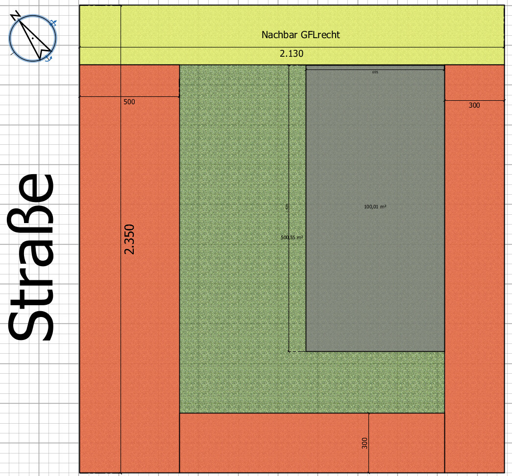 Nun also zu diesem Grundstück. Es geht mir hier erst mal nur darum, wo und wie ungefähr das Haus auf diesem Grundstück aufgestellt werden sollte.