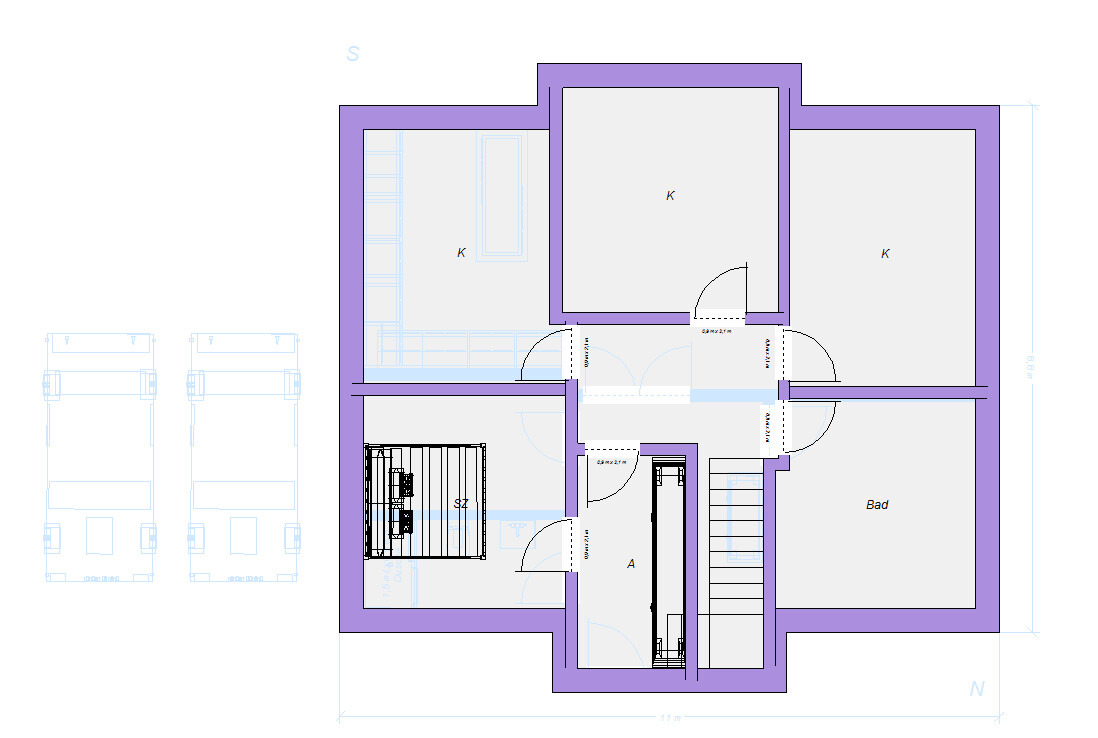 ? - aber nicht weit weg vom (funktionierenden) Modell von Was bedeutet das Fragezeichen an dieser Stelle?Zaba12s Entwurf ist tatsächlich von den Außenmaßen her ähnlich, aber er hat einen Keller. Damit hat er da ja Platz die ganzen "doofen" Räume hinzupacken. Den habe ich leider nicht.