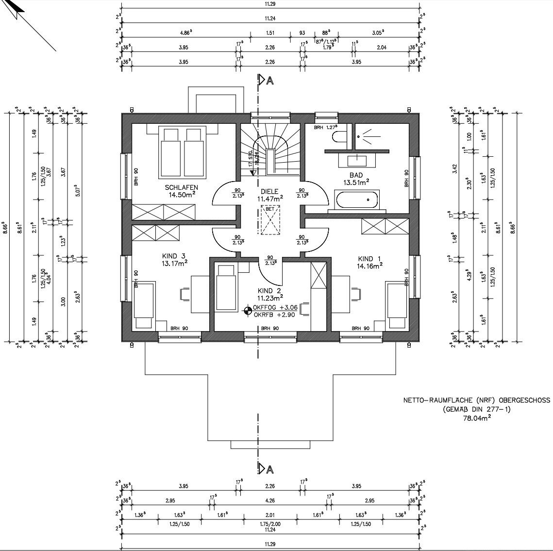 Hier gibt es nicht viel, da ich nur den Vorschlag hier im Forum gefolgt bin und dem Architekt Varianten beszüglich des Fenster im mittleren Kinderzimmer anzufertigen.