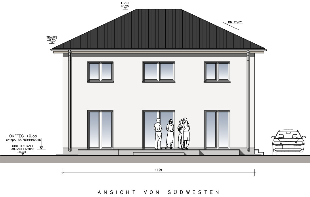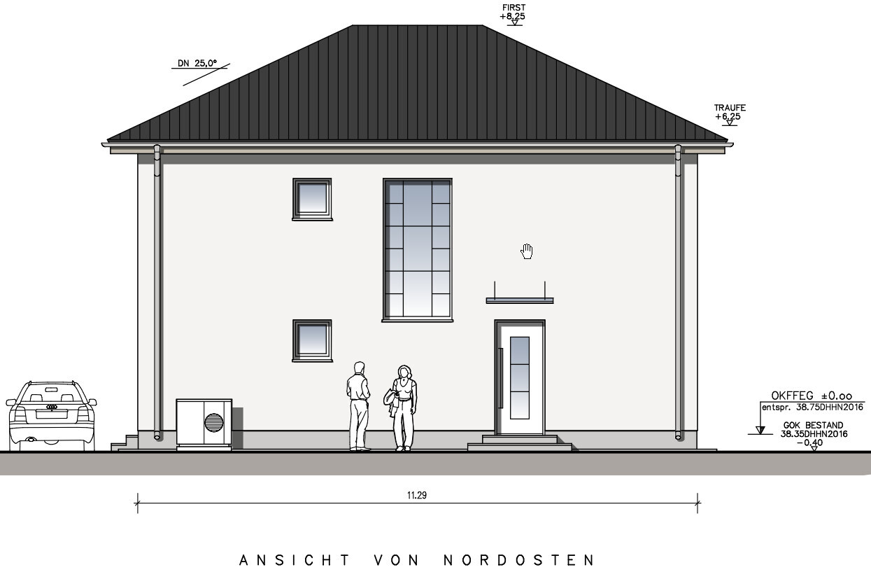 Großes Treppenfenster: Jetzt etwas verkleinert (vsl. immer noch nicht ausreichend) ich finde, es sieht immer noch toll aus (siehe NO Ansicht). Problem ist, dass der GÜ sich momentan weigert Fenster mit >2,25m einzubauen und der Architekt hier immer noch 2,85 eingezeichnet hat. Ich hatte ihn eigentlich gebeten auch eine Variante mit 2,25m einzuzeichnen und eine mit 2 Fenstern, die quasi den Treppenanstieg "mitgehen". Hatte ich in irgendeinem Thread hier im Forum schon gesehen und fand es eigentlich ganz gut. Werde ich Ihm noch mitgeben.