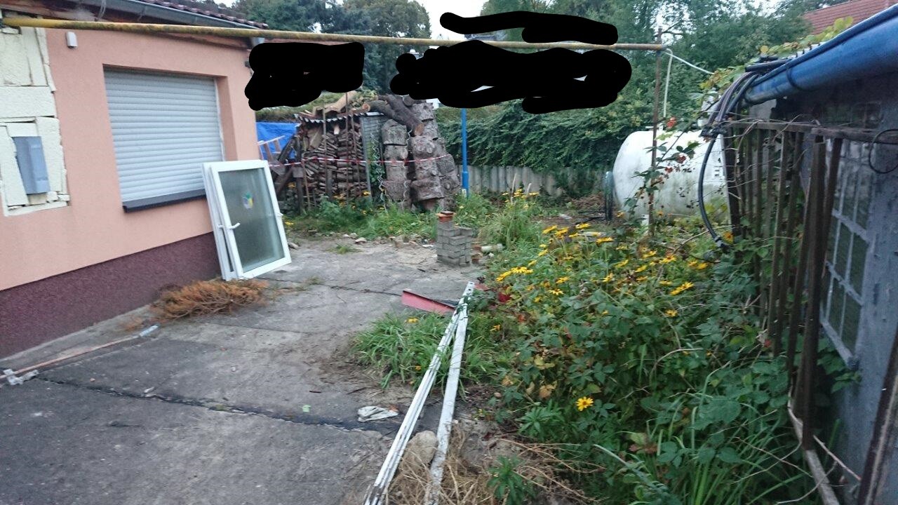 Och wir haben schon einiges rausgeholt da. Von dem o abgebildeten Bauzaunfeldern haben wir insgesamt 5 nur aus Dielen und Balken aus dem Fußbodenaufbau des Hauses gemacht. Fenster hat sich, wie gesagt, der Nachbar geschnappt und die zwei Haustüren genauso. Gastherme haben wir verscherbelt.