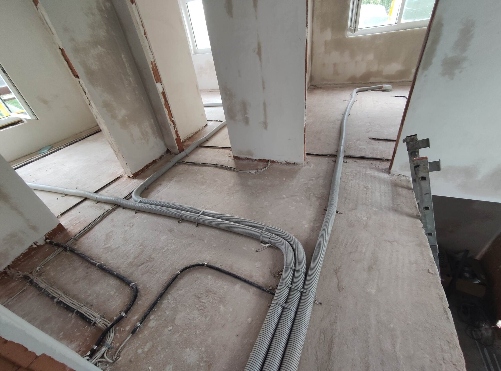 Lüftungsrohre im OG laufen in die verschiedenen Zimmer