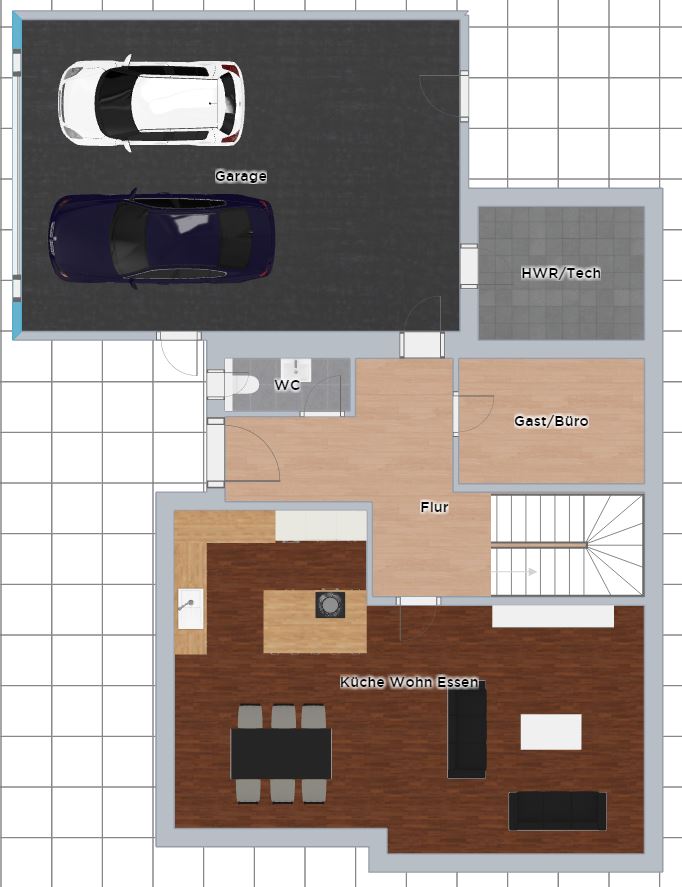 Der nächste Schritt ist wirklich das zeichnen mit reellen Wandstärken und das grobe möblieren mit euren Einrichtungsgegenständen.