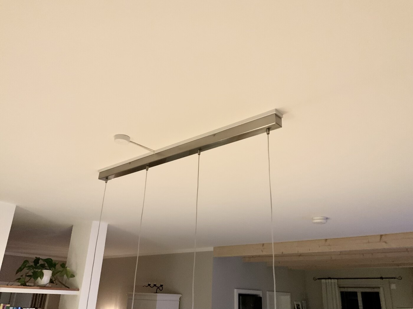 Wir haben über dem Esstisch drei Anschlüsse, wobei nur zwei genutzt werden. Den dritten haben wir verputzen lassen. Falls da nochmal ein Upgrade auf einen größeren Tisch ansteht, kann ich den aufklopfen und drei Lampen anschließen.