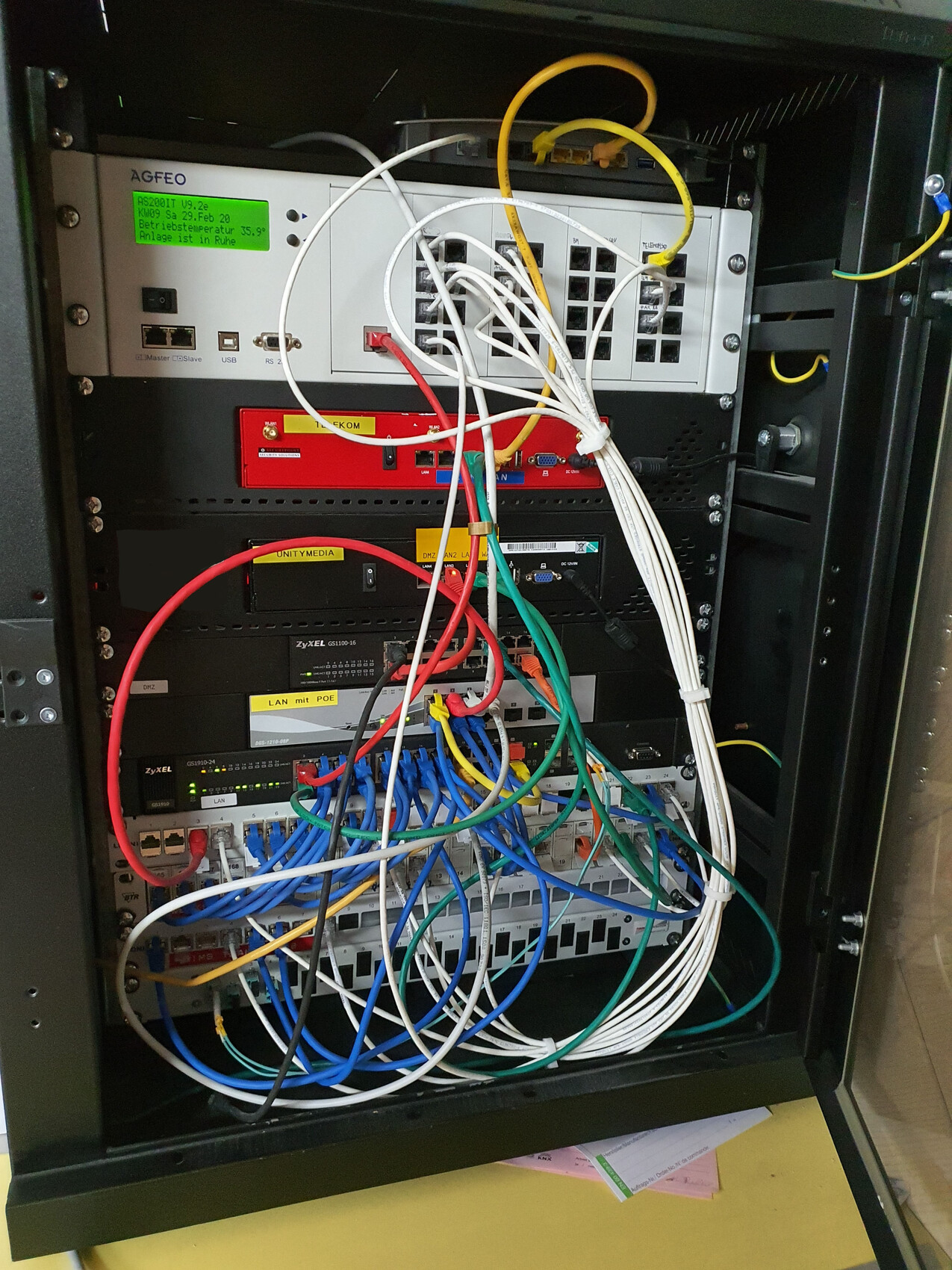 Ich bastle ja gerade an unserem Netzwerk für das neue Haus. Sieht aktuell im Aufbau so aus:DAS sieht echt schickt aus. Wie bereits angemerkt wurde ist das besser als das was ich in den meisten Firmen antreffe :-/
