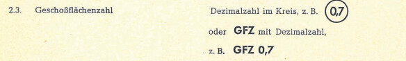Also doch kein Widerspruch?Ja, ok, ist geodätische Korinthenkackerei, deshalb die Kennzeichnung als Übertreibung, aber korrekt ist es nicht. Die Planzeichenverordnung von 1965 bietet zwei Möglichkeiten zur Darstellung der Geschossflächenzahl: Die Zeichenerklärung weicht davon ab. Was ist also falsch? Die Darstellung oder die Zeichenerklärung?