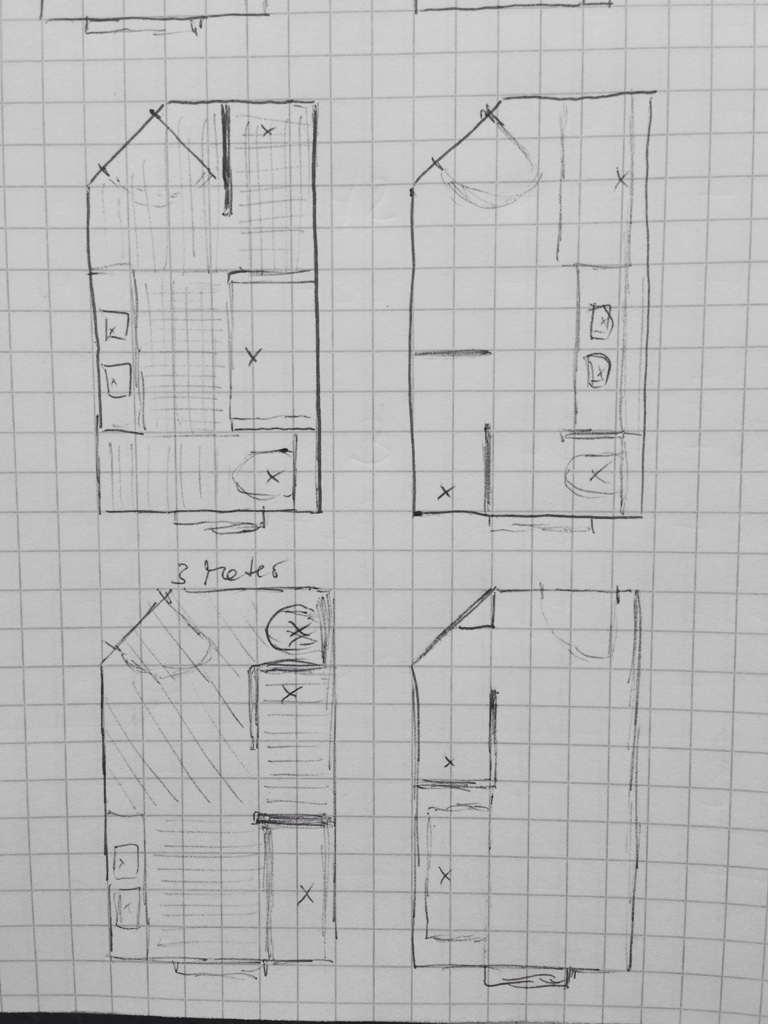 Ich hab noch mal geschaut: wenn Ihr die Dusche Gemauert und ohne quadratische Duschtasse haben wollt, dann bietet es sich auch an direkt planoben rechts ein winkliges grosszügiges Areal zum Duschen mit Ablage abzumauern und die Wanne neben die Toilette... oder Waschtisch dort lassen und Wanne an die gerade Wand?!