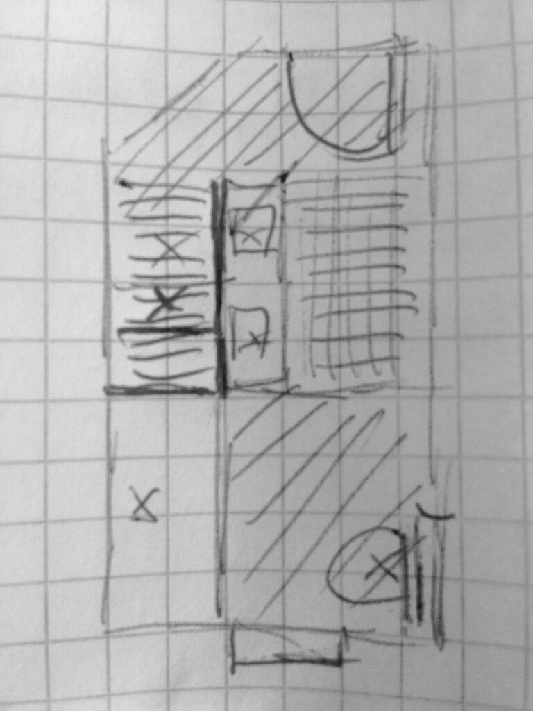 Wir werden gleich noch mal auf der Baustelle herumlaufen und uns gedanklich die Möbel vorstellen. Mal sehen ob noch eine Idee kommt.