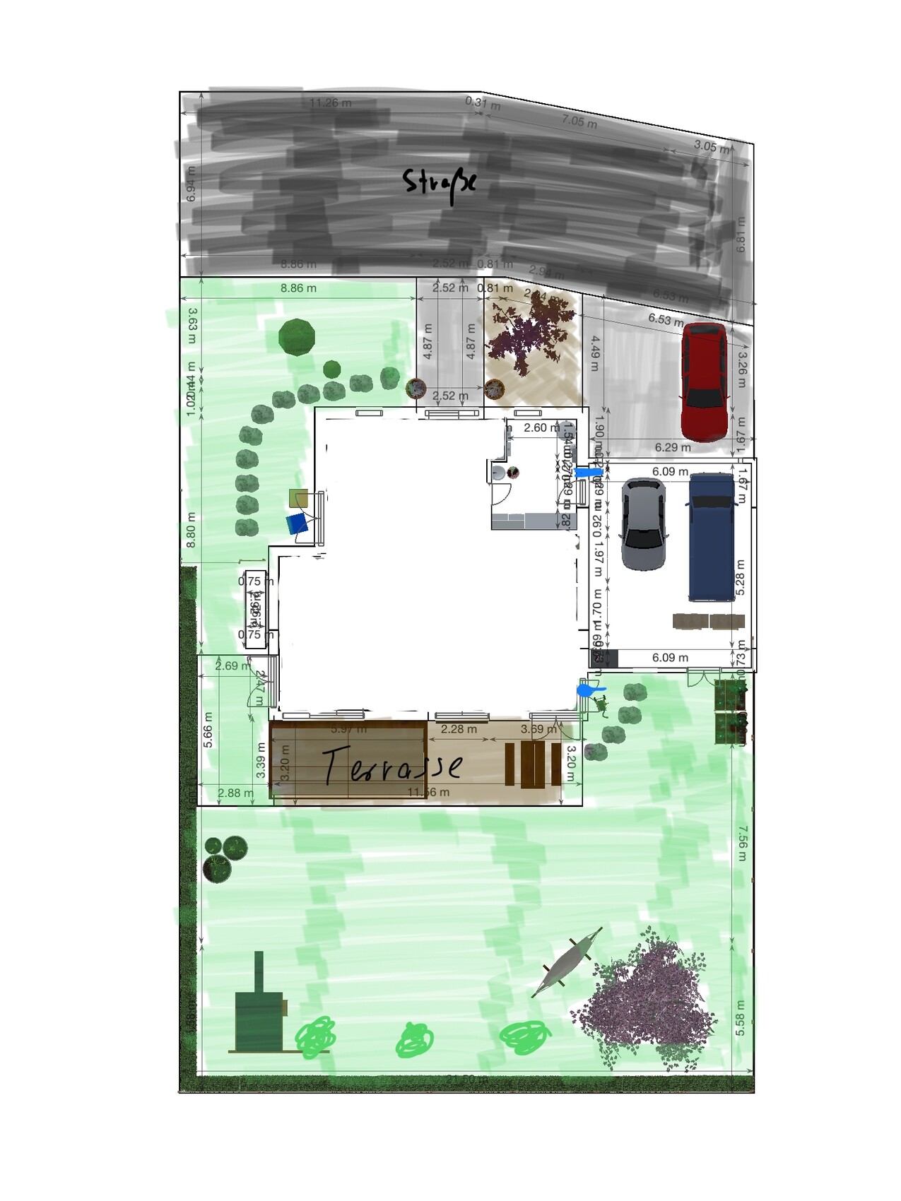 Falls du mal dein ganzes Grundstück postest und auch die Hecken und Büsche einzeichnest kann ich dir mit der Planung etwas helfen.Danke für das Angebot! Ich habe mal mein Grundstück angehängt.