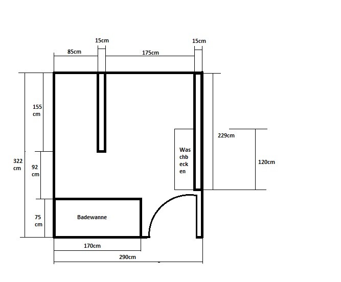 Anbei der bemaßte Grundriss (Putzmaße!) für unser Badezimmer.