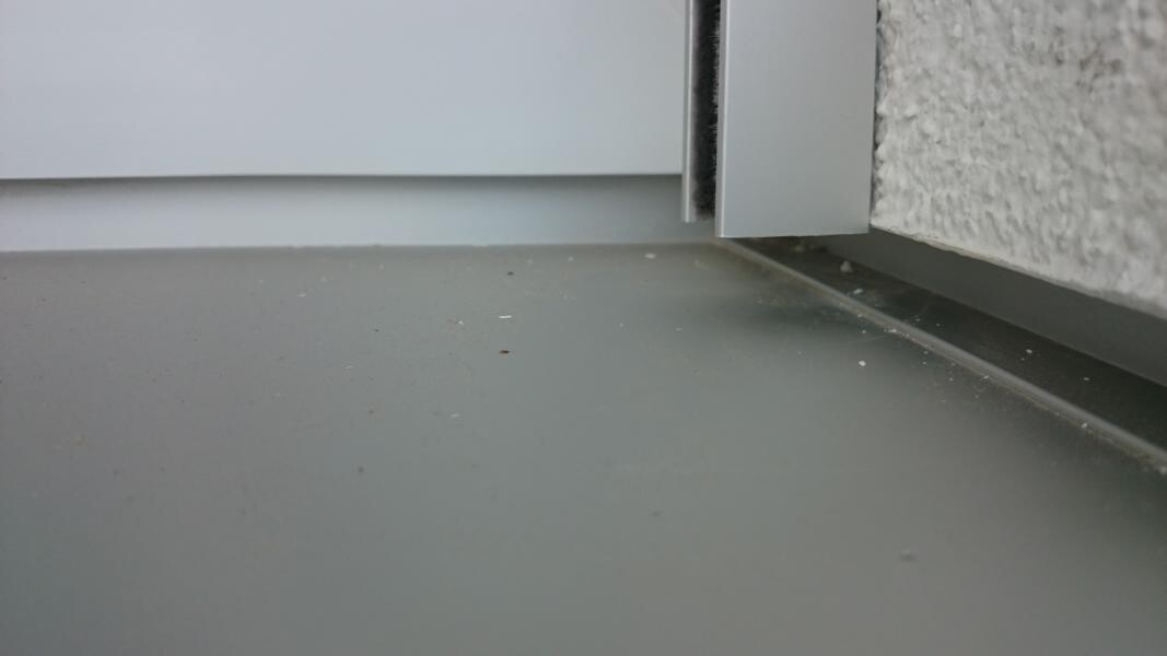 Auch durch die Schlitze der Aluminium-Laufschienen zwischen Wand und Laufschiene!
