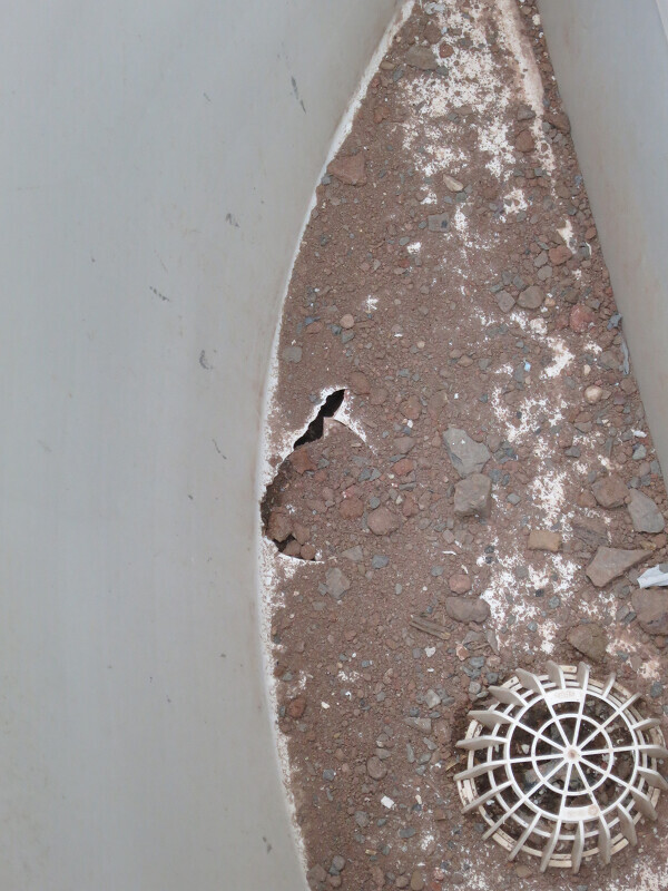 mit unserem Bauträger Interhomes bauen wir derzeit ein Einfamilienhaus. Die Übergabe ist für spätestens 31.05.17 geplant. Als ich unlängst in unsere Lichtschachtsysteme geschaut habe, entdeckte ich ein Loch am Boden eines dieser: