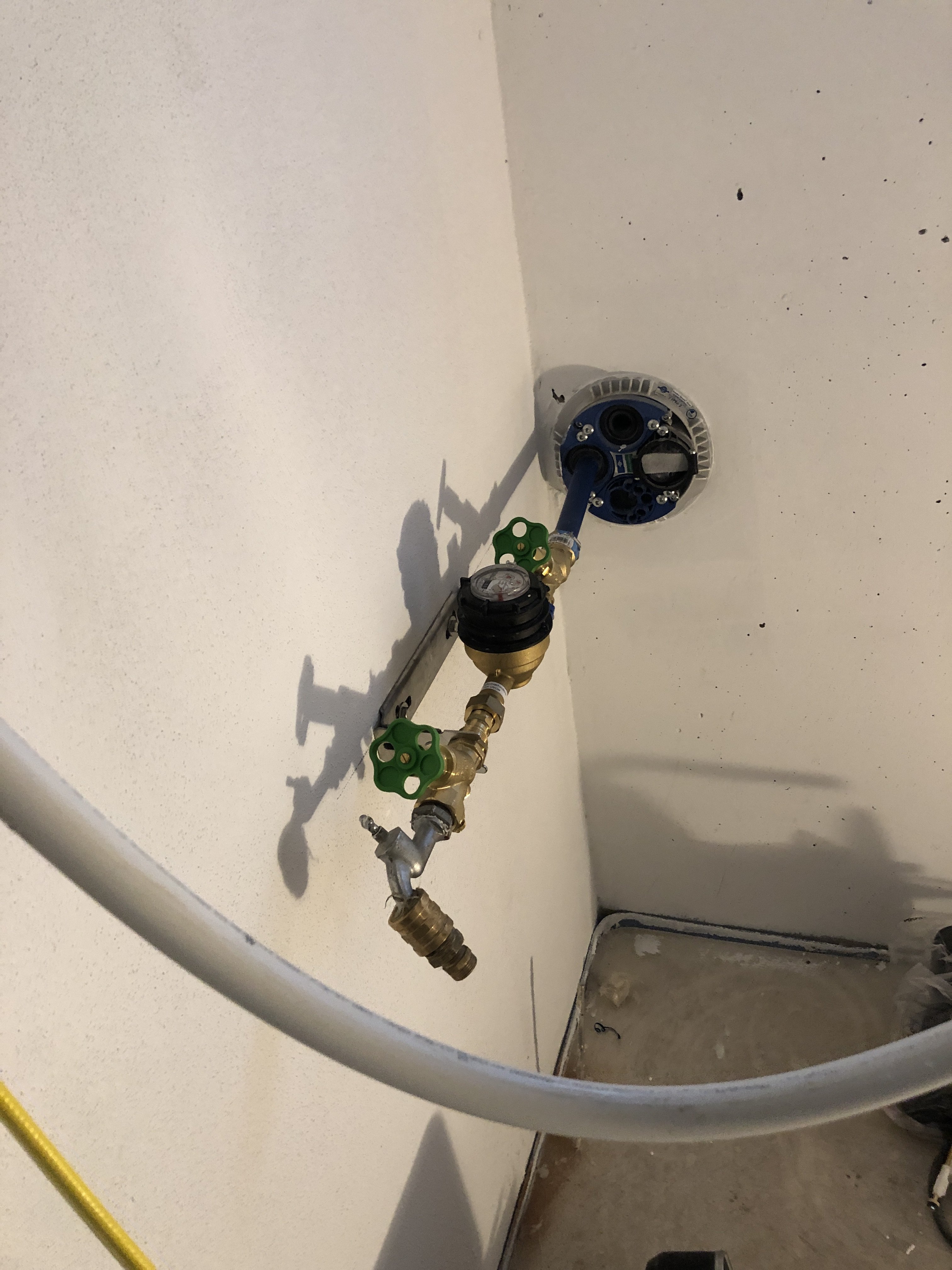 Da ist nen Zähler dranDie Wasserleitung an die Mehrsparte hat bei mir der Rohbauer gesetzt und nicht verrechnet.