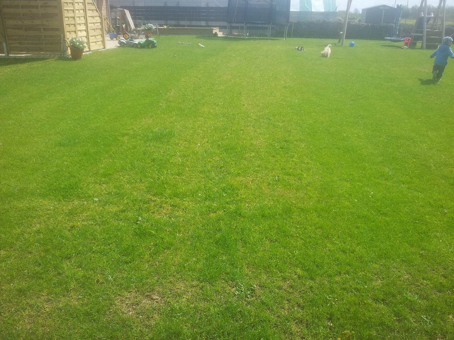 wir haben vor einem Jahr unseren 450 qm großen Rasen angelegt, an einem Samstag kam jemand mit seinem Maschinenpark (Gartenfräse, Kreiselegge und Rasensämaschine) um das schnell und praktisch durchzurocken. Leider reichte die besorgte Rasensaat (Compo Spiel und Sport) nicht aus so dass wir aus dem Plaza Baumarkt Spiel- und Sport Rasensaat der Firma GFG besorgen mussten.