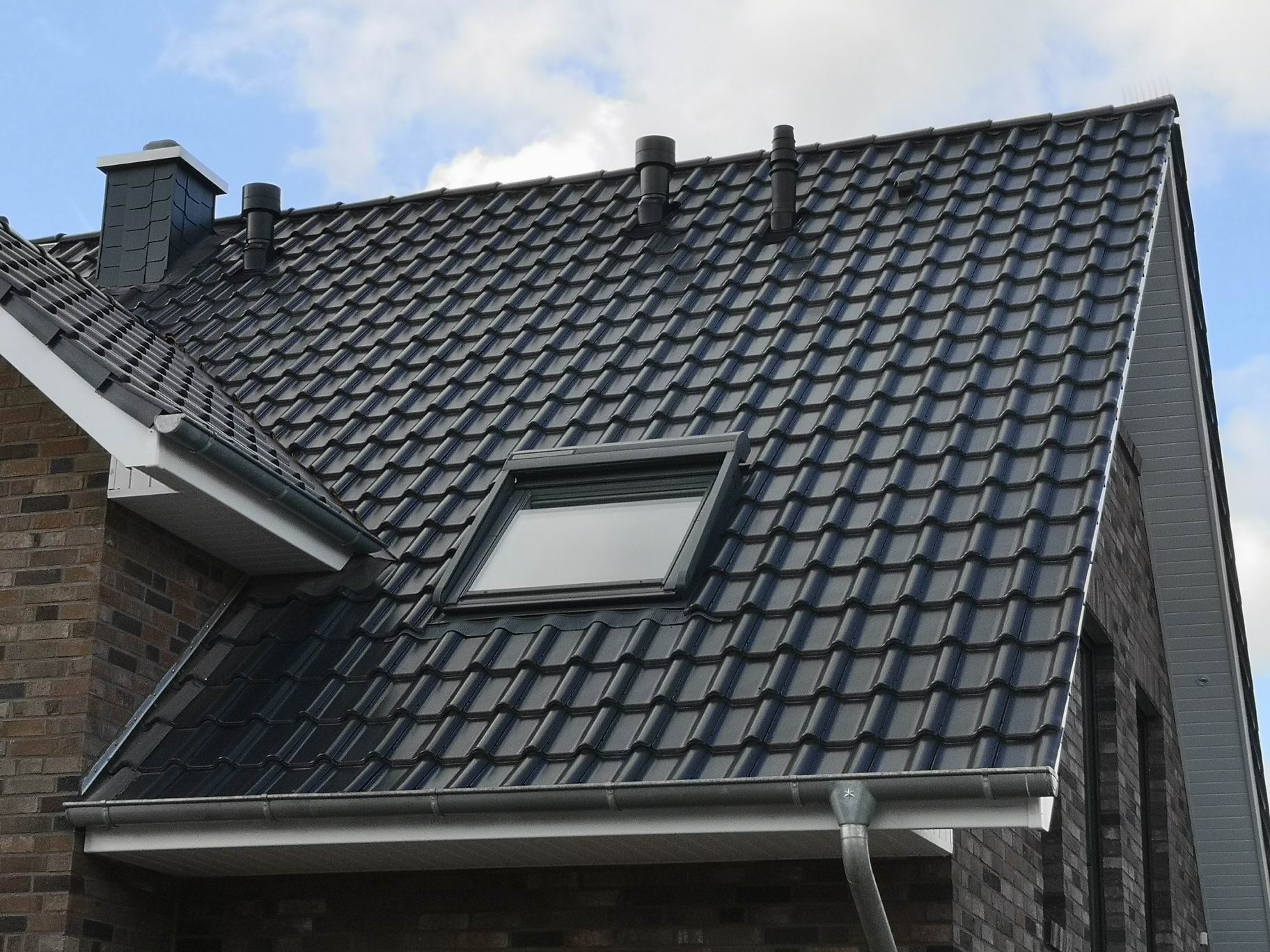 Der Auslass ist neben dem Schornstein der Gas-Brennwerttherme.