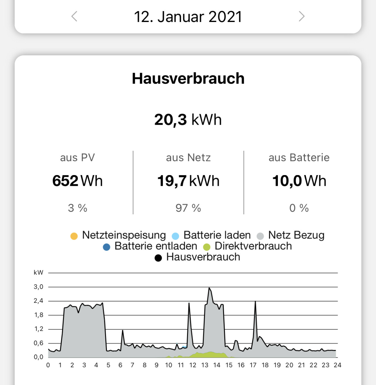 Die Wärmepumpe kapiere ich leider weiterhin nicht. Die Spreizung ist jetzt wieder ok, der Verbrauch auch. Mal sehen wie lange. Lag gestern irgendwo bei 12-14 kWh für die Wärmepumpe