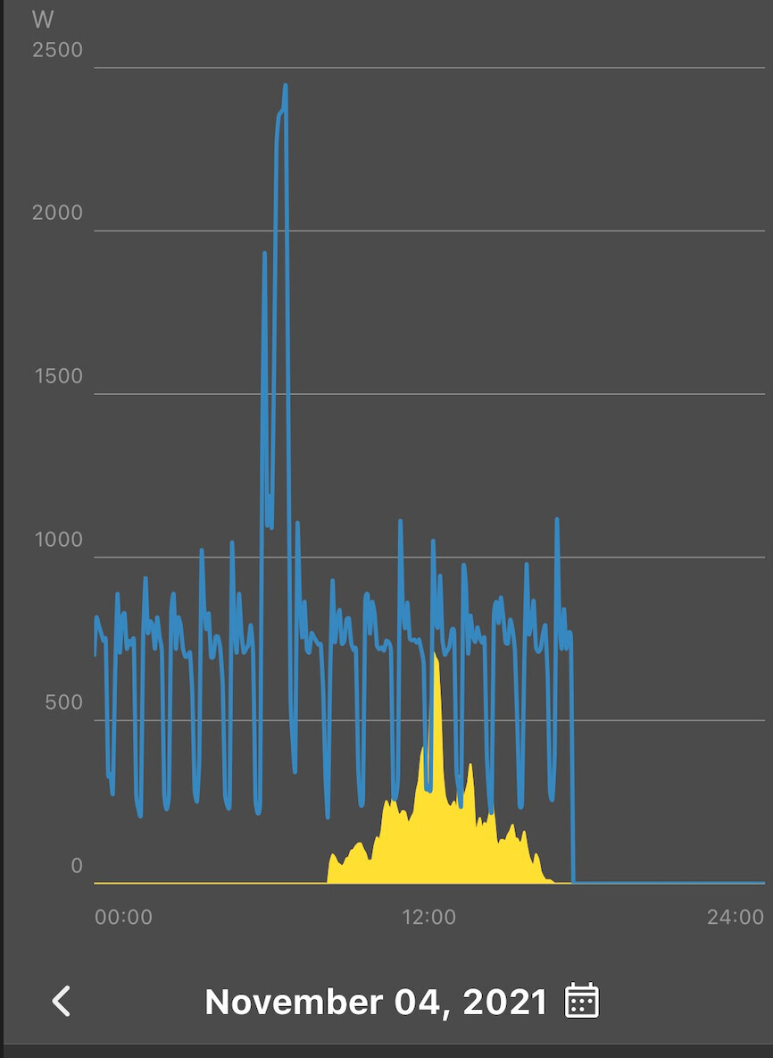 Habe innerhalb 24h ca. 14kWh verbraucht ink. Warmwasser. bei ~7°C AT