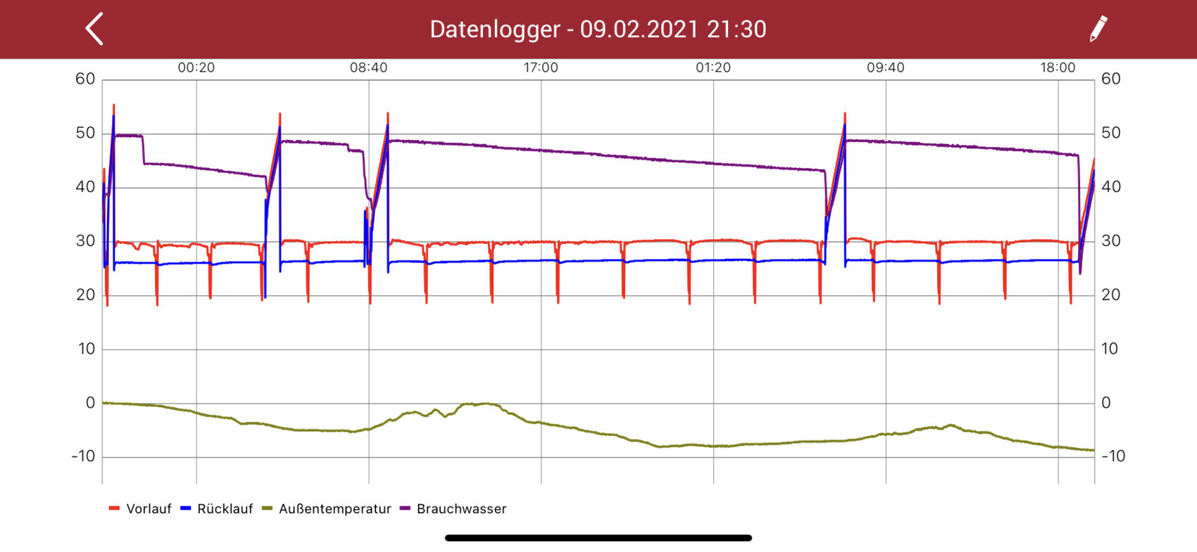 Vorlauf liegt bei ~30 Grad, aktuell -8,2 AT.