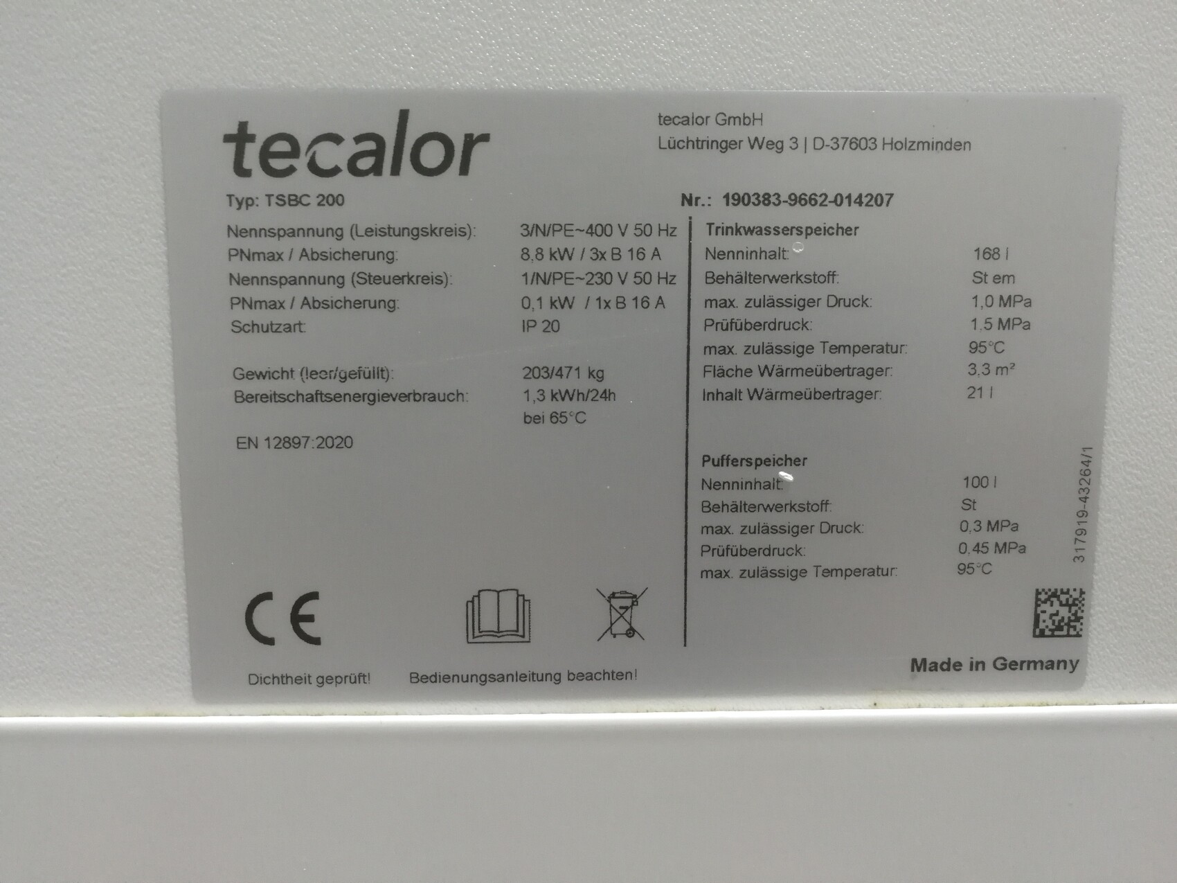 Gemäß Typenschilder liegt mein Speicher bei gesamt 268L wie es aussieht (168 Trinkwasser, 100 Puffer)