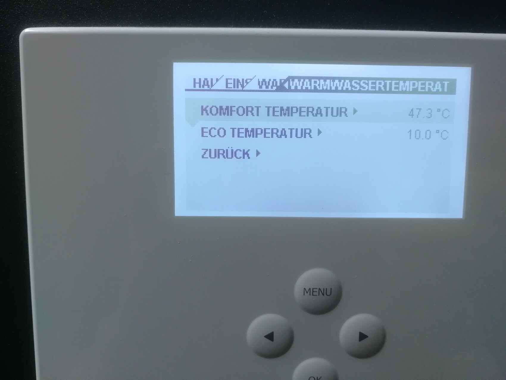 Dann müsste das Warmwasser bis 55° aufgeheizt werden und ab 47° fängt sie wieder an.