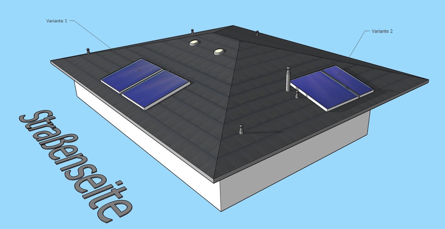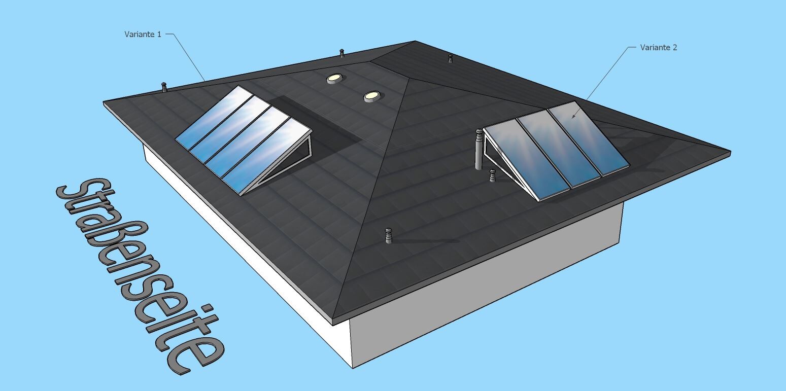 Ich vermute mal, dass selbst wenn unaufgeständerte Flachkollektoren möglich wären, das Ganze trotzdem unwirtschaftlicher wäre als die teureren Röhrenkollektoren einzusetzen. Ich denke, es läuft auf die Röhrenkollektorlösung hinaus. Die sieht so aus, wie ich das am Anfang dachte. Flach auf dem Dach aufliegend. Interessant, wie viel teurer die sind.