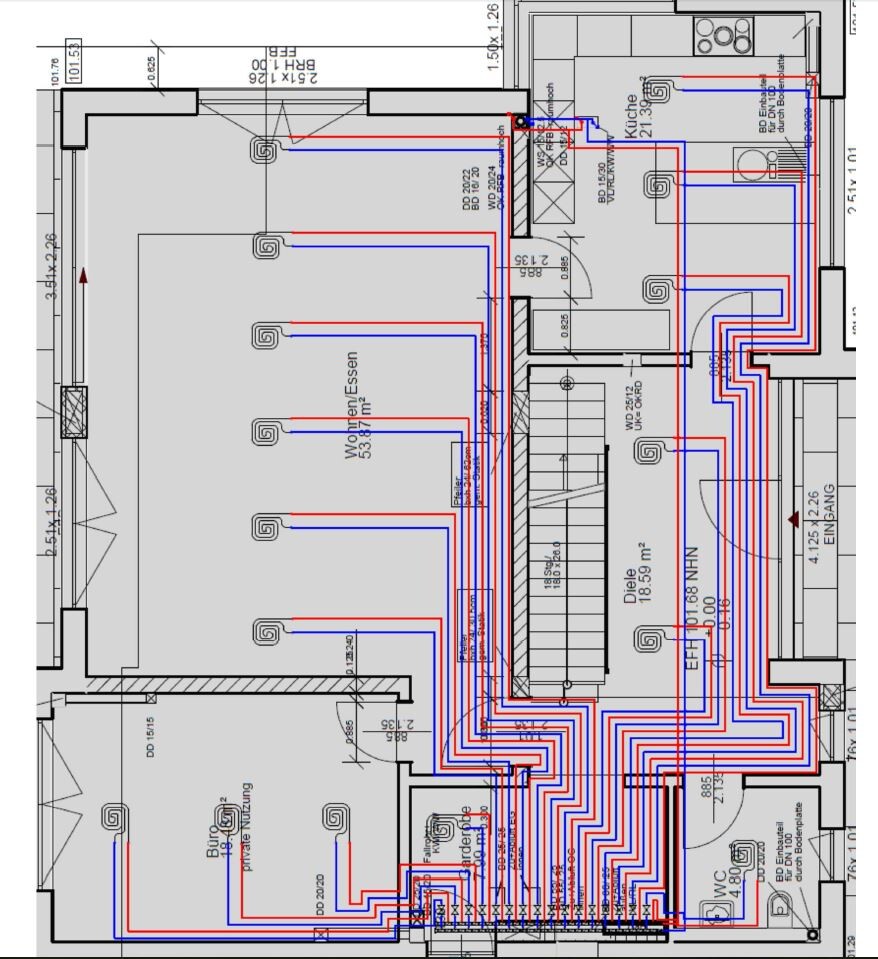 Da es nun aber auf einmal heißt, die Räume werden so ausgeführt wie vertraglich beschrieben, heißt das für mich ja im Umkehrschluss, dass die gesamte Heizlastberechnung nicht stimmt. Ebenfalls weckt das Zweifel, dass die Fußbodenheizung später tatsächlich flexibel einsetzbar ist.