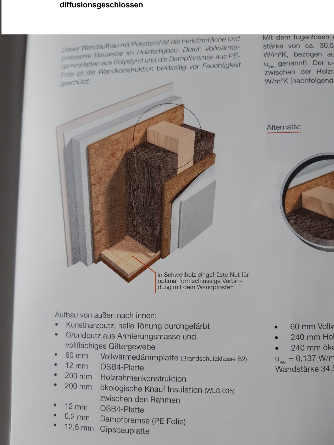 Atmende Wände sind ein Werbegag. Lass dich nicht auf den Unsinn ein.Hierzu würde ich gerne eine Frage stellen: Wir haben bei unserem neuen Haus die Wahl zwischen "diffusionsoffen mit Holzfaserplatte" und "diffusionsgeschlosen mit Polystyrol". (Den genauen Wandaufbau in beiden Fällen kann ich gerne noch nachliefern, falls notwendig.) Der Preisunterschied beträgt 5.440,00 incl. MwSt. für unser 2-geschossiges Haus, 9,40 qm x 9,40 qm.Ist unsere bisherige Wahl für "diffusionsoffen mit Holzfaserplatte", die wir noch widerrufen können, gut oder können wir auch darauf verzichten?