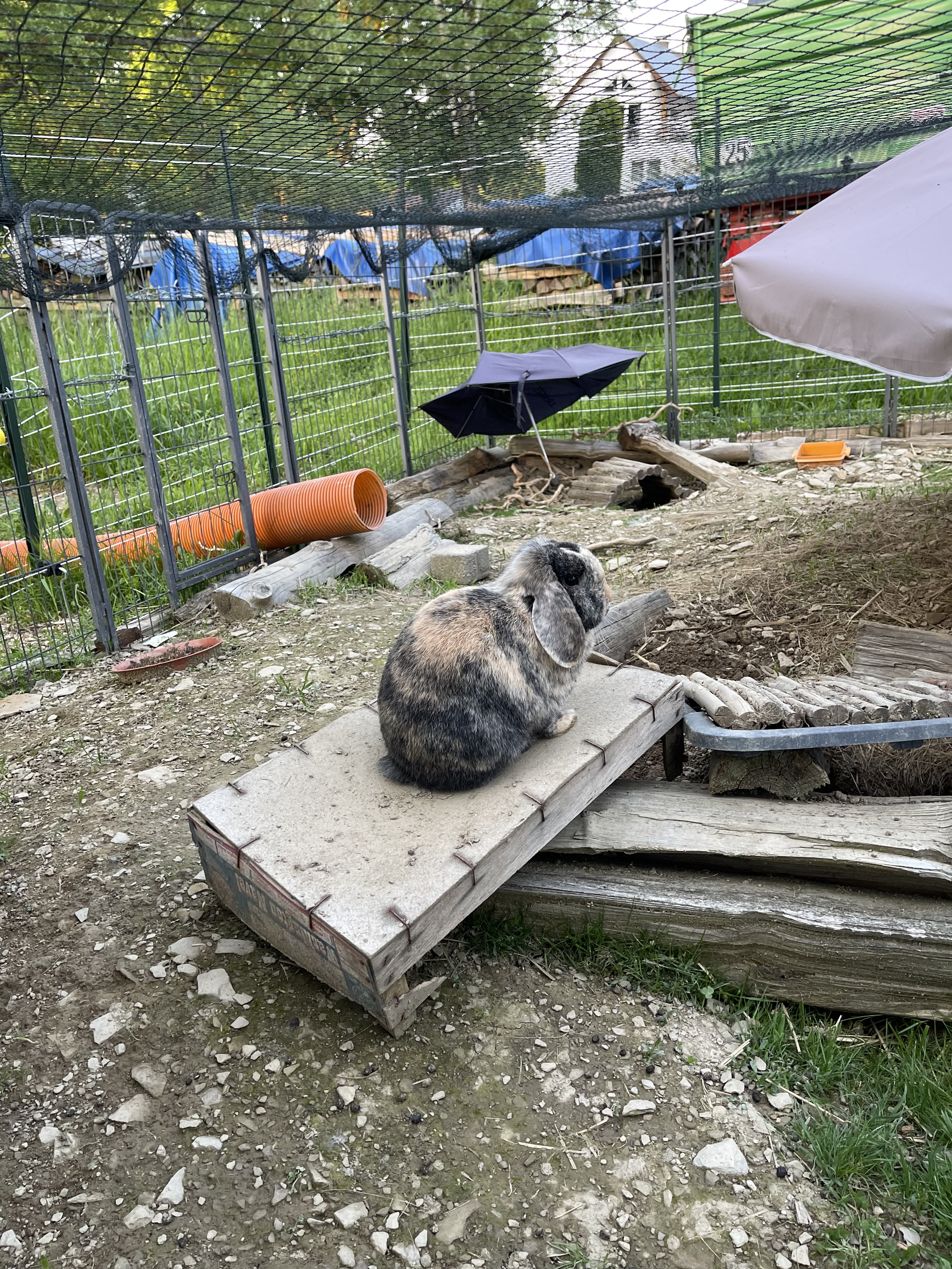Ich habe genug mit unseren Tieren zu tun. Die sind übrigens seit ein paar Tagen wieder draußen im Gehege.