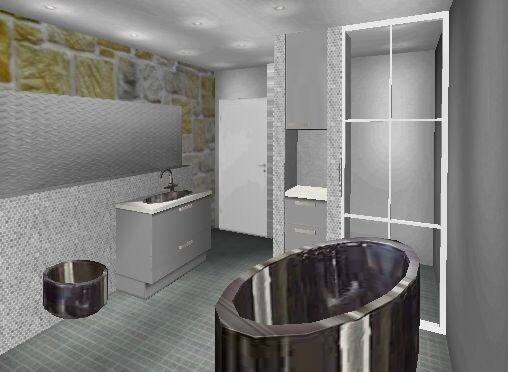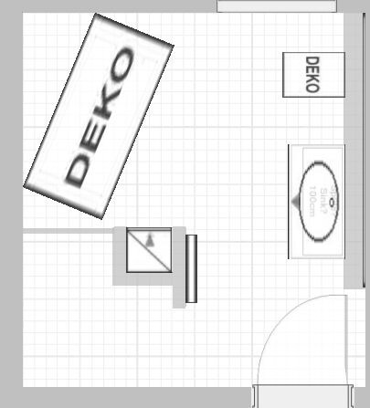Aber ähnlich schräg aufgestellt wäre auch meine bisher schönste Vorstellung gewesen, nur halt auf der rechten Seite. Links oben dann wie bisher die Dusche. Toilette links vorne, daneben eine halbhohe Trockenbauwand und daran das Waschbecken (anders als geplant) damit es den Blick auf die Wanne nicht versperrt.