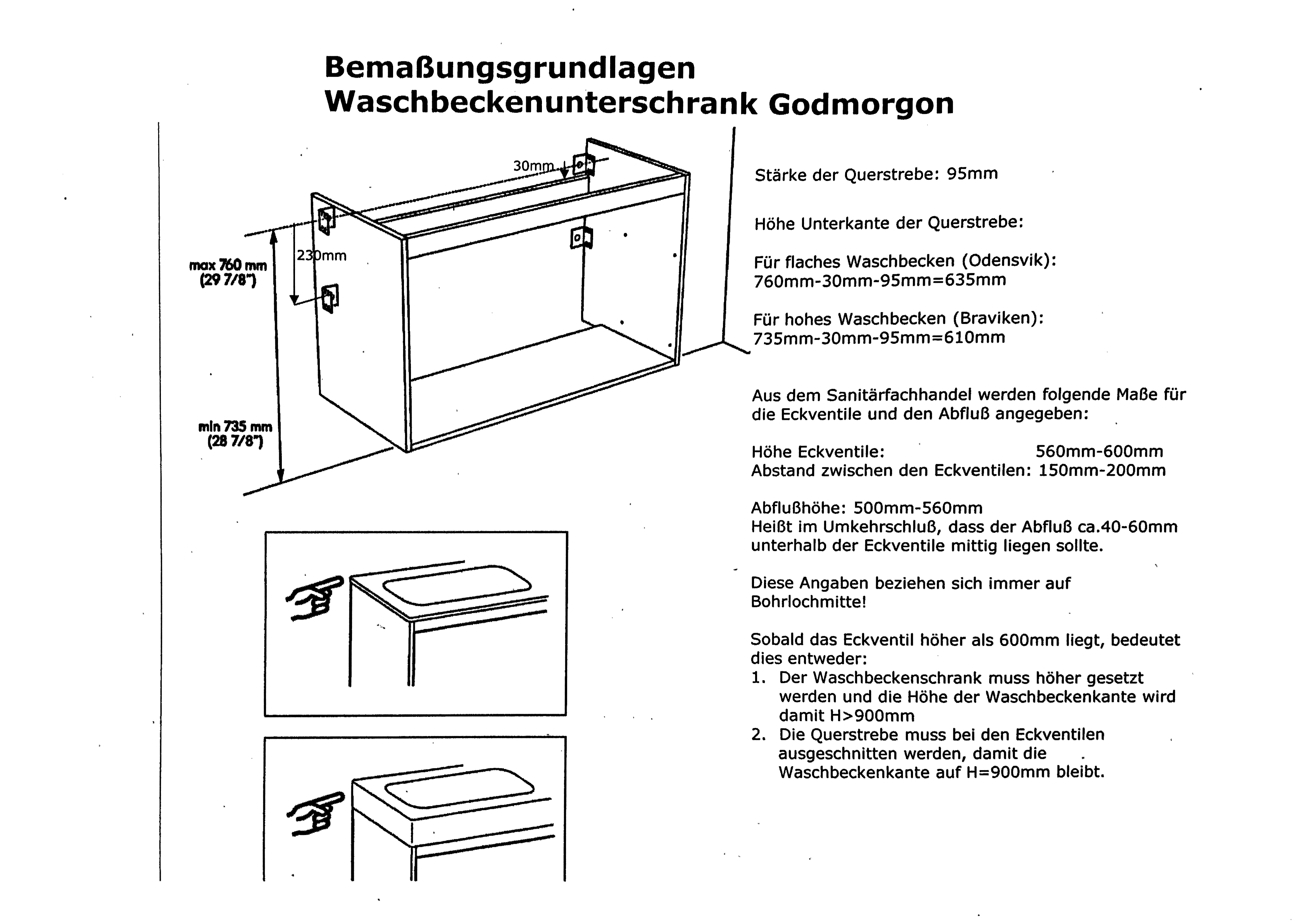 Aber einen Zettel "Bemaßungsgrundlagen Waschbeckenunterschrank Godmorgon" habe ich bekommen, der ist hilfreich. Damit sollte ich es hinbekommen, selbst einen Plan zu erstellen. Habe ihn angehangen, vielleicht hilfts ja jemand anderen auch.